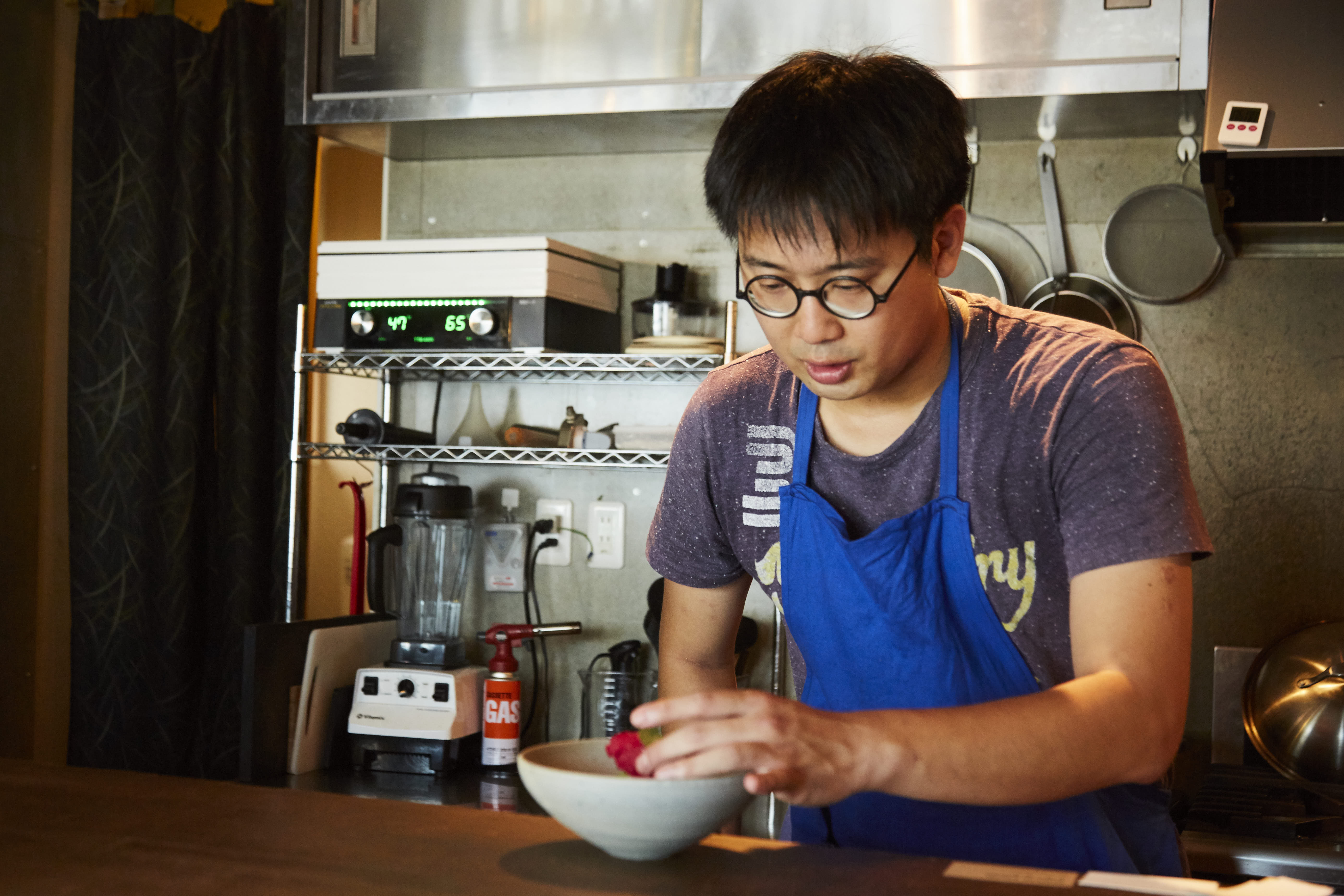 シドニー「Tetsuya’s」で修行後、帰国。ミシュラン二ツ星の日本料理店「湖月」にて和食の技術を学んだ後、マンダリン オリエンタル 東京の「タパスモラキュラーバー」で、化学を応用した調理技術を習得。その後「omotesando sakaba」などを経て、2014年8月、現店「Salmon & Trout(サーモン・アンド・トラウト)」のオーナーシェフとなる。