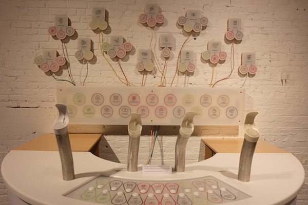 会場で一番大きな仕掛けが作られていたのが、におい(香り)にテーマを絞った実験コーナー。様々な香料がこの実験装置の下に仕込まれています。