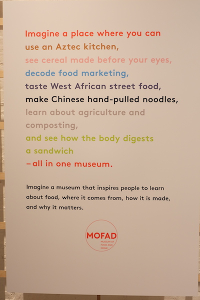 MOFADの正式名称は「The Museum of Food and Drink」。つまり“食”をテーマにした博物館です。でも、“博物館”と聞いて一般的にイメージするものとは大分違います。いわば「体感型の企画展が行われるギャラリースペース」といった感じでしょうか。