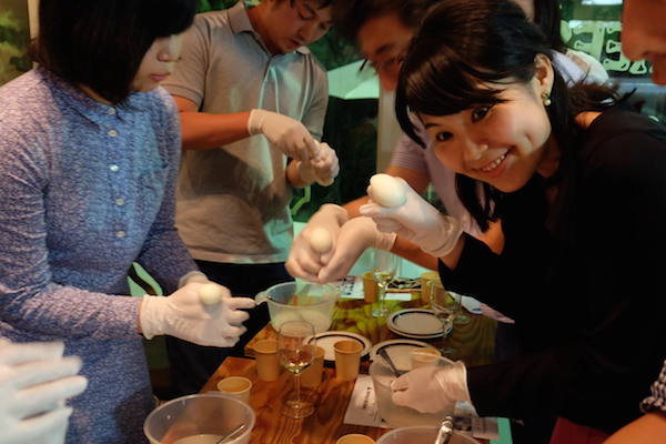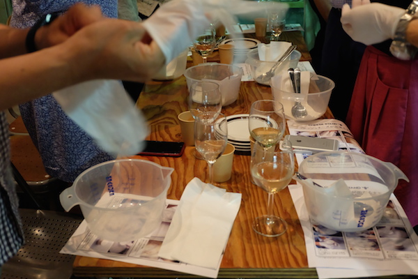 「豆腐の白和えを作ってるみたい」「思ったより固くない?」「子供の頃の粘土遊びを思い出すなぁ」・・・みなさん楽しそうです。