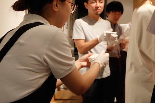 いよいよ、実践です。一人ひとり、手袋を装着し、ワクワクモードが高まります。