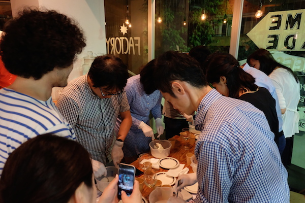 お手製のモッツァレラは早々に食べてしまい、CHEESE STANDのフレッシュチーズを使った料理とワインで、美味しく、楽しい“チーズな夜”は更けていったのでした。