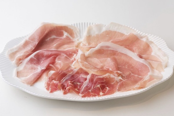 パルマハムは、モモの付け根の乾燥した部分、脂がのって赤身とのバランスが良くしっとりした部分、スネに近い濃厚でねっとりした部分・・・など部位別の特徴を理解することでスライスの厚みや食べ方を変えるなどの応用が可能です。