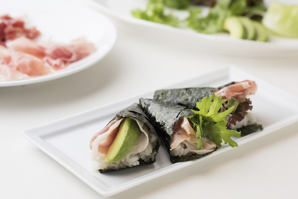 「パルマハムの手巻き寿司」は、具材をいろいろと楽しめ、家族団欒にも最適です。北村さんがこの日ご用意されたもので、特に印象的だったのは、わさび菜。清涼感ある香りとピリッとした刺激は、おろしわさびよりやさしく、食感も楽しい具材でした。