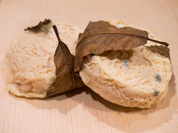 河口エリアは沼地が多く、湿気が多い場所のため、栗の葉はもともとチーズの湿気を調整する役割も。長期熟成したものは、ねっとりとしたテクスチャーでヘーゼルナッツのようなコクが感じられ、まさにしっとりとした秋にぴったりの味わいになります。