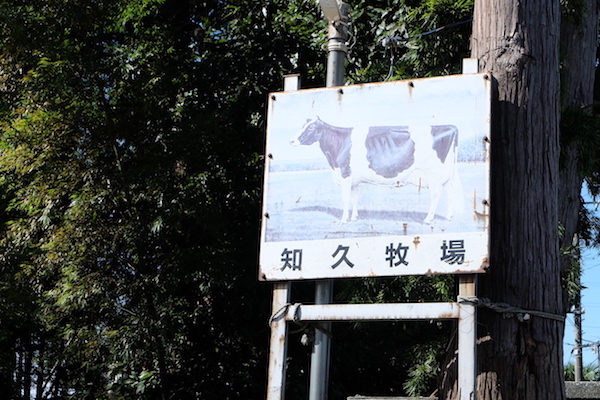 知久牧場の入口にある看板。この牛の看板に導かれるように敷地に入るとすぐのところに、チーズ工房があります。