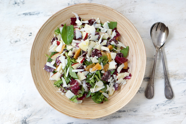 ・フルーツは旬のものでOK。季節ごとにオレンジ、ぶどう、洋梨などを。野菜はベビーリーフ、エンダイブ、サラダ用ほうれん草などでも代用可能です。