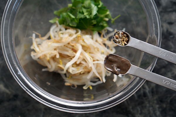 もやしは「セグロのクサレ」という長時間発酵して作られた調味料(アンチョビソースのようなもの)と、柚子やぶどう山椒などの香りが効いている「Nomadic Salt」というハーブソルトで味付けました。