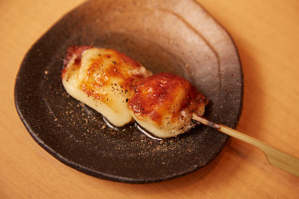 うちは焼鳥屋なので、凝った料理という訳ではなく、シンプルに串でカチョカヴァッロを焼いています。焼鳥の肉と同じくらいのポーションにカチョカヴァッロをカットして、串を打ち、じっくりじっくり、丁寧に火入れをしていきます。とろりと溶けて伸びてくるチーズですし、黒く焦がしたら台無し。