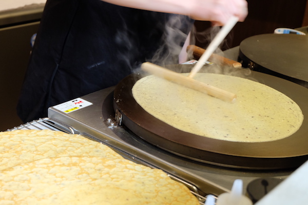 ベースとなる生地は、もちろん注文ごとに1枚1枚手焼きされるのですが、この生地がまず美味しい。砕いたナッツがブレンドされていることもあり、とても風味豊かでしっとりとした生地になっています。
