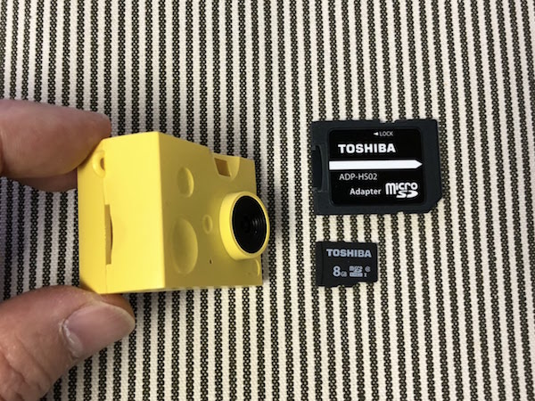 右下の小さなmicroSDを、カメラの横にある穴にグッと押し入れてセットします。