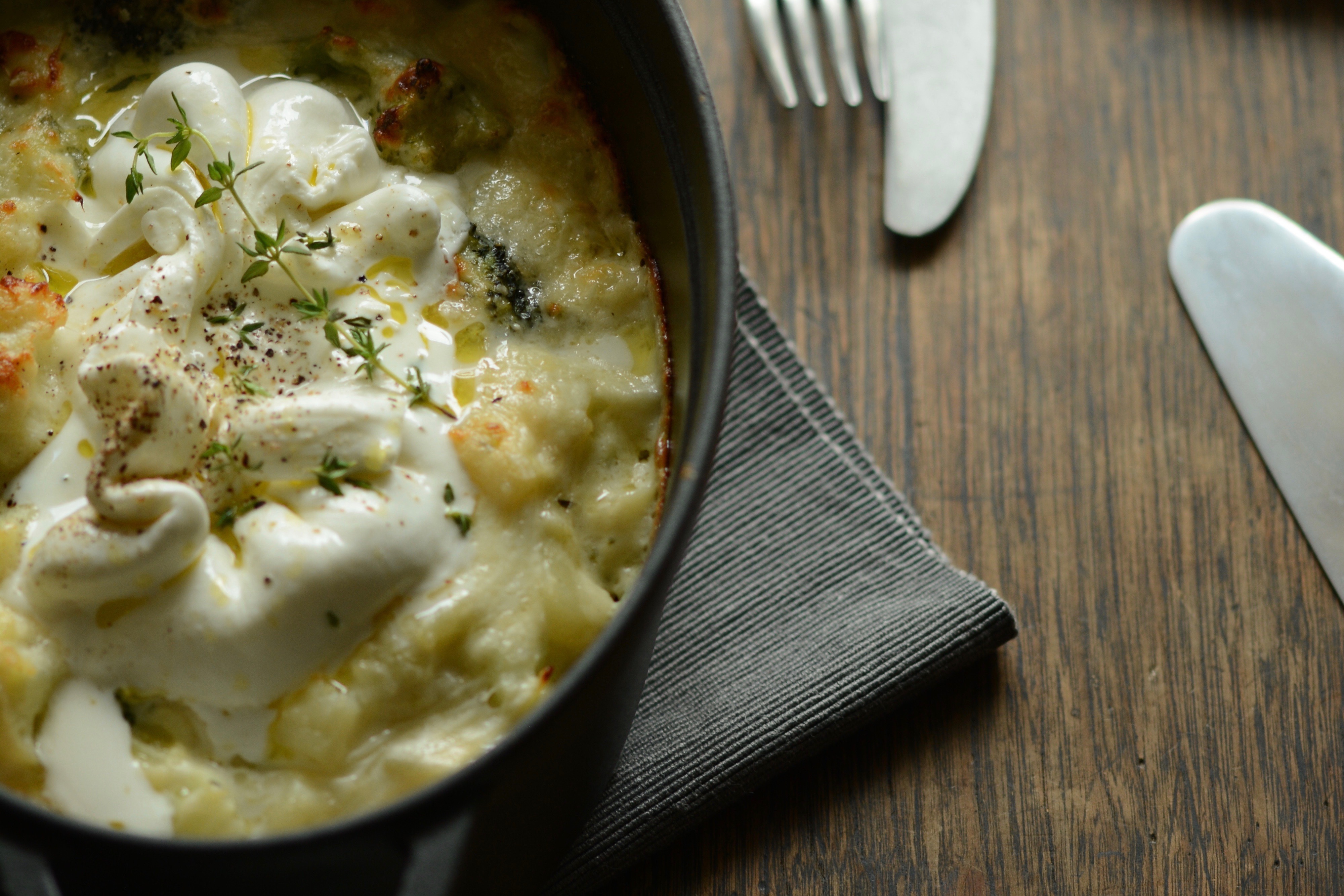 「カリフラワーとブロッコリーのグラタン ブッラータのせ」