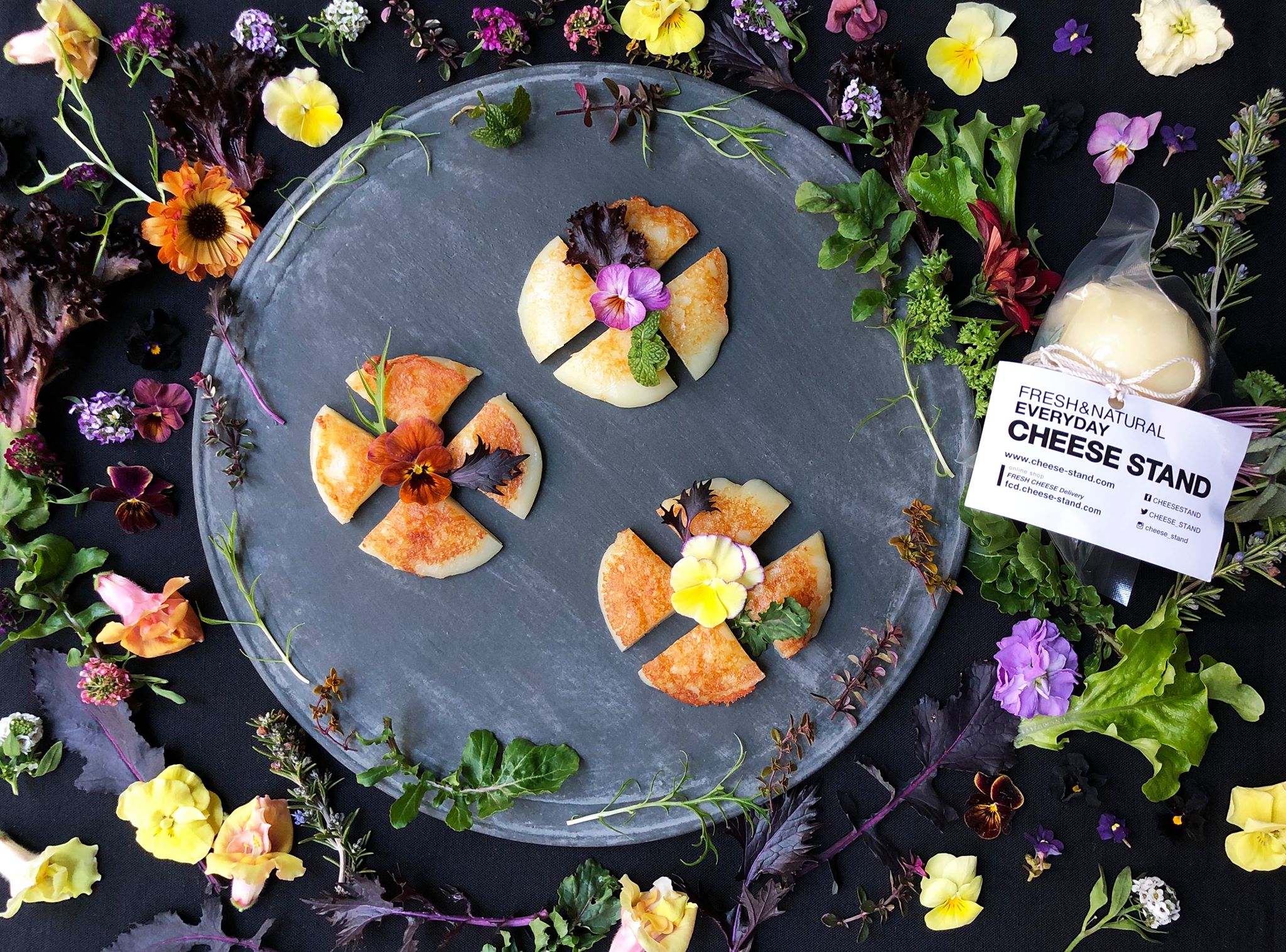 待ち遠しい春の訪れ、一足先に畑からオーガニックのエディブルフラワーやハーブたちが届きました。 焼いて温かくしても楽しめるカチョカヴァッロを花畑のような盛り付け方でご紹介します。