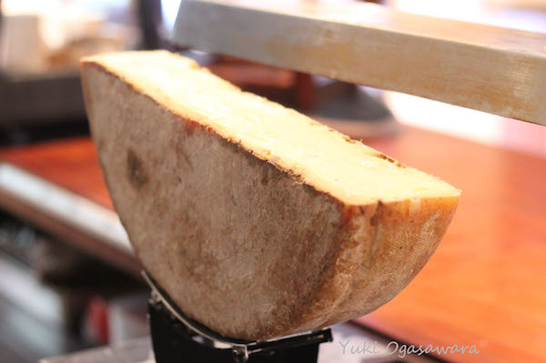 そして、ラクレットもそんなチーズのひとつ。重さ5㎏前後、セミハードタイプの円盤形チーズは、現地の家庭での保存に程良いサイズ。むっちりとやや水分を含む生地は加熱によって溶けやすく、ラクレしたり料理に使ったりするにはぴったりなのです。