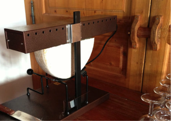 ラクレットグリル。こうやってチーズの切り口を熱して溶かして…